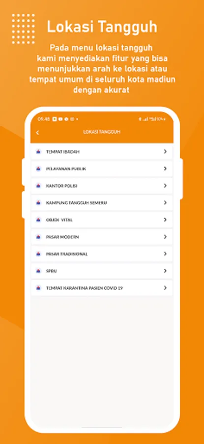 This application is to provide convenience in providing emergency reports and signals, the development of Kampung Tangguh Semeru, in order to welcome the city of Madiun to be healthy and smart in a new era of normality.