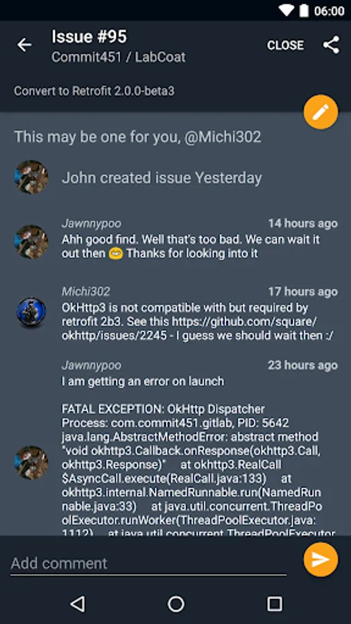 With LabCoat, you can manage projects, create issues, and even accept merge requests all from your device. We <3 GitLab and wanted to create a fully featured app, native to Android. With LabCoat, you can: