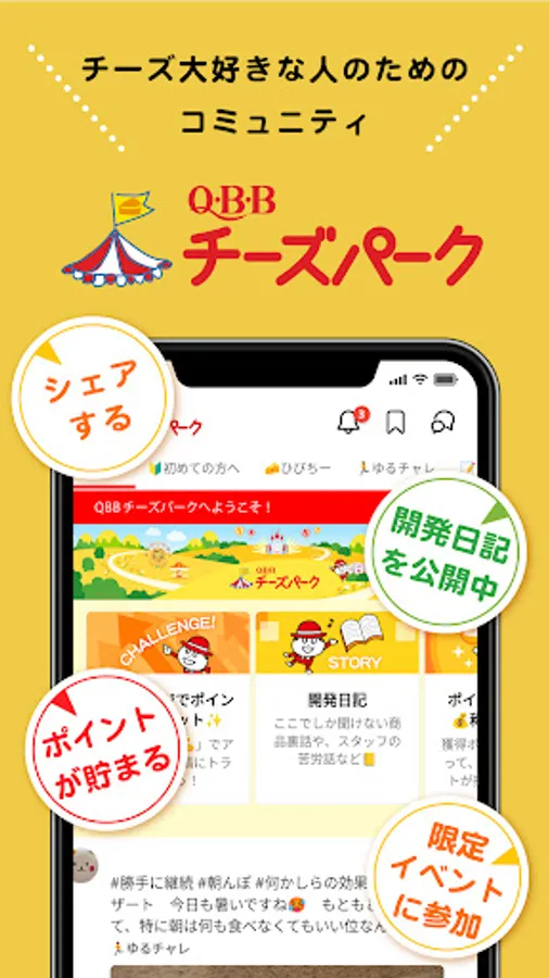 QBB Cheese Park is a community app that provides fun support for everyone who loves cheese to keep their minds and bodies healthy.