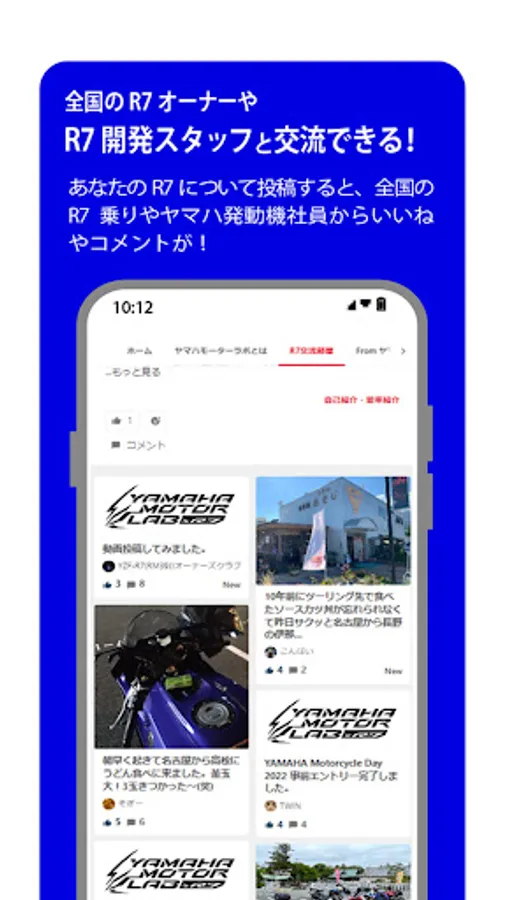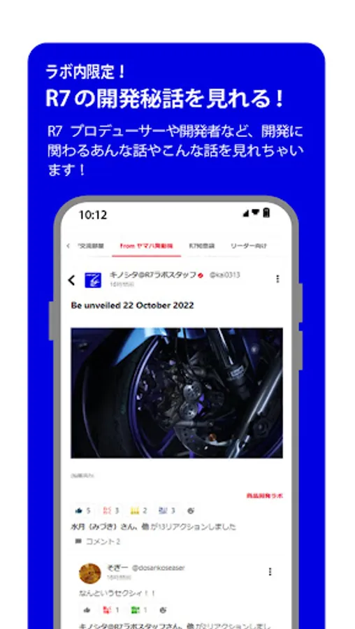・Exchange information with lab members and Yamaha Motor staff through posts, likes, and comments