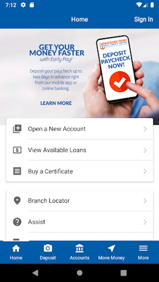 Our new mobile app provides members convenient access to Commodore Perry Federal Credit Union's mobile website, mobile check deposit, mobile banking, branch & contact information, and help.