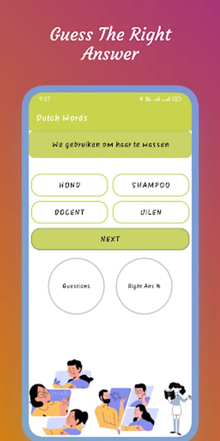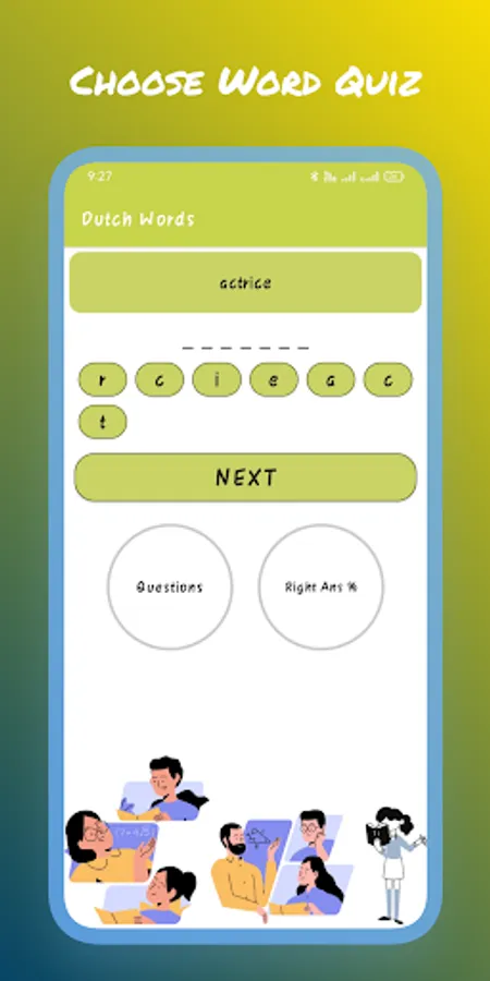 After the completion of the first segment, the quiz section starts from the Q/A quiz section. Learners will get a series of jumbled words one by one and have to rearrange the letters for making a meaningful word. This quiz round of learning Dutch words contains easy as well as tough jumbled words so that users of any age can play the quiz. Learners will rearrange the words just by tapping on the letters.