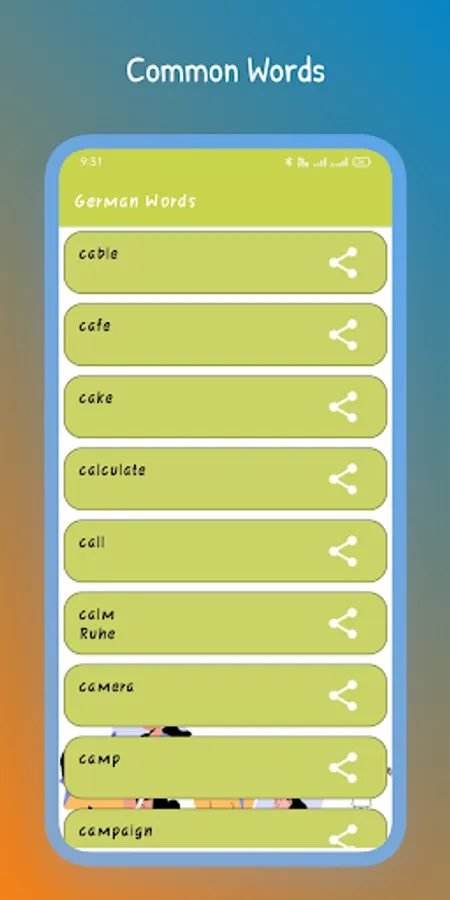 In the Settings option, learners can select from German to any other language of their preference. Learners or users can also share the application on any social media platform for reference. We hope the users will find the application helpful and worthy of learning German words.