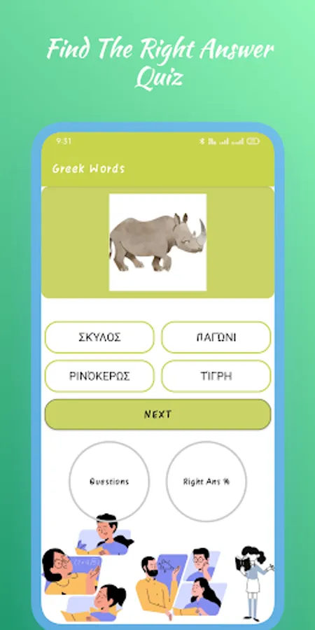 The image quiz section of the learn Greek words(μάθετε ελληνικές λέξεις)application is preferable for kids and teenagers. Learners will get different pictures and according to those pictures they have to guess the correct option from below. After choosing every correct answer learners will get the correct answer percentage increased. The image quizzes are mostly from easy to intermediate levels.