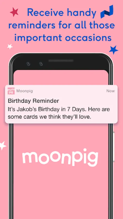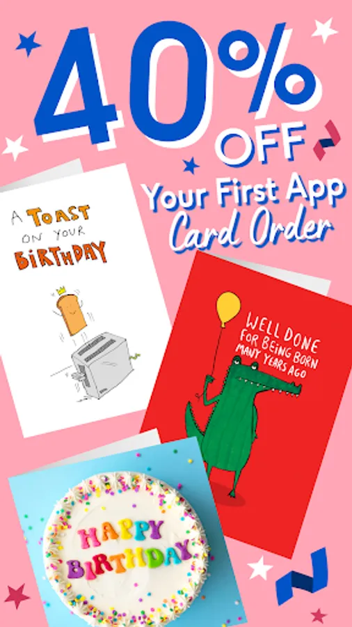 The Moonpig app is so much more than a birthday card app; whether you’re sending thinking-of-you flowers, personalising the perfect gift or setting birthday reminders, we’ve made it simple. Order by 9:30pm and we'll dispatch your order the very same day. You’ll even get 40% off your first card when you download the app! It’s a no-brainer.