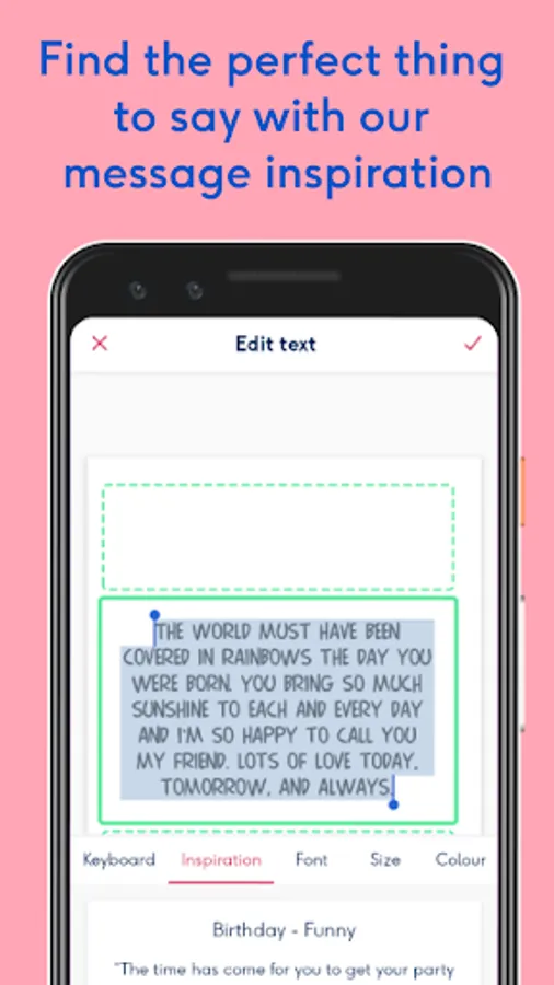 · Always get stuck on what to write? We have plenty of pre-written greeting card messages on the app to get you started.