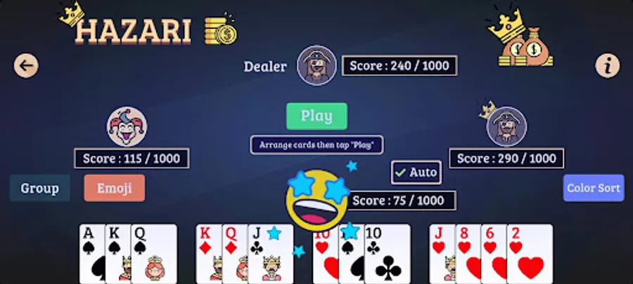 hazari card game is one of the most popular card game in the south Asia region. It's a 1000 points card game. Very easy to play. If you are starting your card game journey then it will be the best choice for you. Hazari can help you to learn teen patti in future Or if you already know teen patti then you can also play hazari tash game.