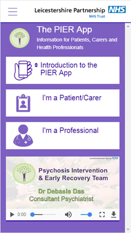 The PIER app provides a single platform for patients and carers to learn more about the symptoms of psychosis and its management, particularly what to expect when under the PIER Team. There are helpful links which provide information about psychosis and related disorders. There are useful links to improve knowledge of therapeutic interventions, including medication used to treat psychosis and other psychosocial interventions, like cognitive behavioural therapy and family therapy. The app has information about the referral process, recovery and how to seek help in crises. There is focus on healthy lifestyle choices and physical health monitoring in severe mental illness.