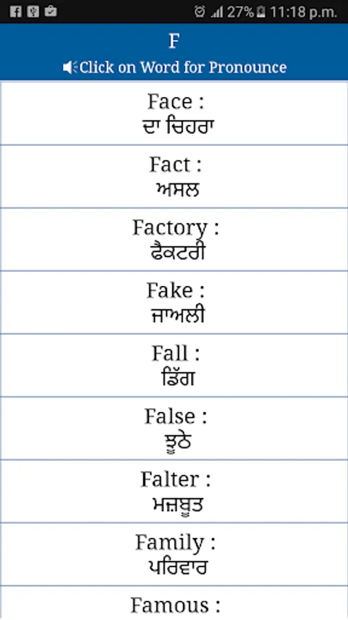 This English to Punjabi Common words app you can use as a Mini or micro English to Punjabi dictionary. This application also help to kid or kids to learn simple English to Punjabi common words . Not only kids but also all Punjabi native people can use this common words . By using this common words you can make English to Punjabi Translation usually.