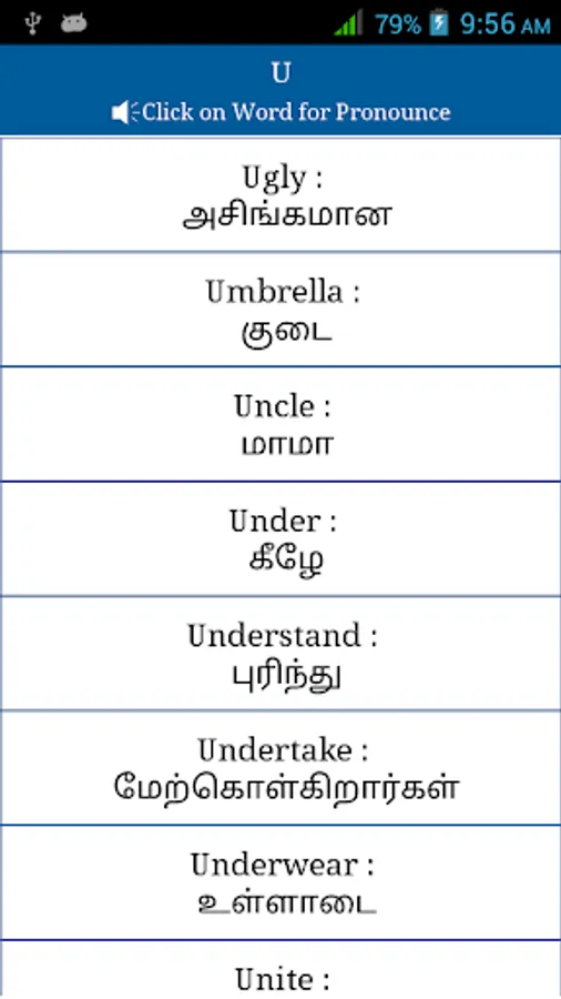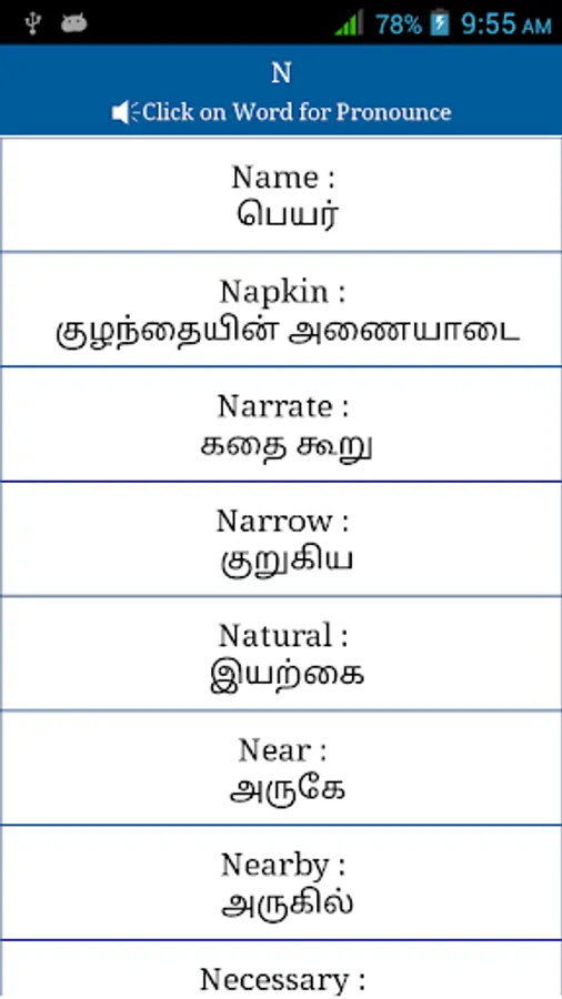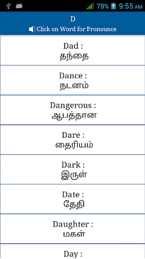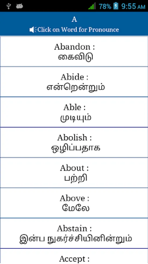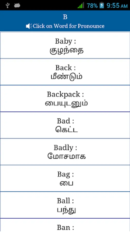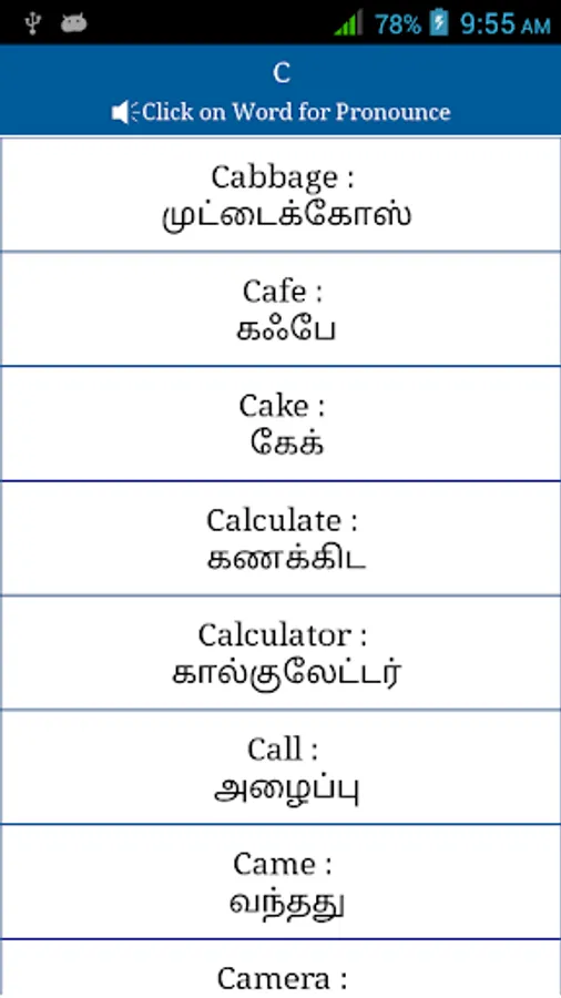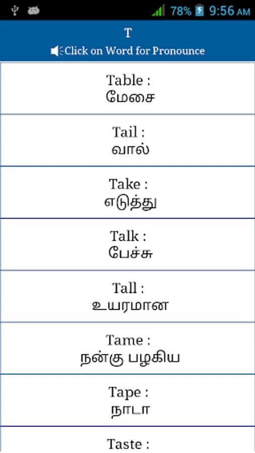 Common words English to Tamil with pronounce or sound .This app help you to learn very common words, daily necessary words , must known English to Tamil words , Vocabulary , Spoken English to Tamil and Simple words .