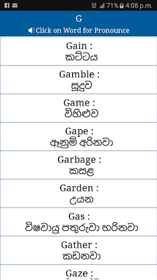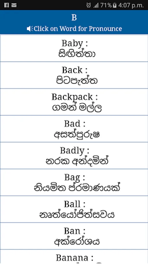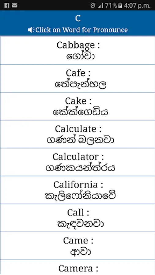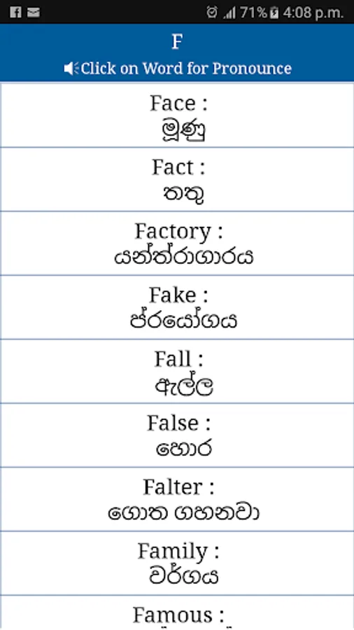 This English to Sinhala Common words app you can use as a Mini or micro English to Sinhala dictionary. This application also help to kid or kids to learn simple English to Sinhala common words . Not only kids but also all Sinhala native people can use this common words . By using this common words you can make English to Sinhala Translation usually.