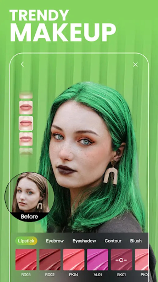 - Use the make up editor to enhance your natural beauty, including lipstick, eyebrows, and more