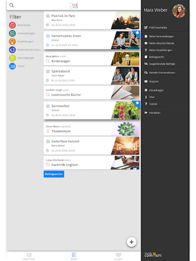 Do you want to network with people in your area, would you like updates from us, do you want to give away your old microwave or are you looking for a jack? Nothing easier than that - the app ensures optimal networking. Download, register, log in, enjoy!