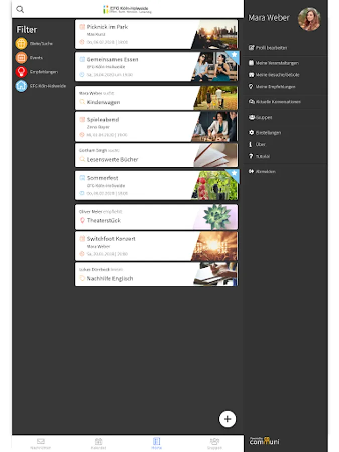 Do you want to network with people in your area, would you like updates from us, do you want to give away your old microwave or are you looking for a jack? Nothing easier than that - the app ensures optimal networking. Download, register, log in, enjoy!