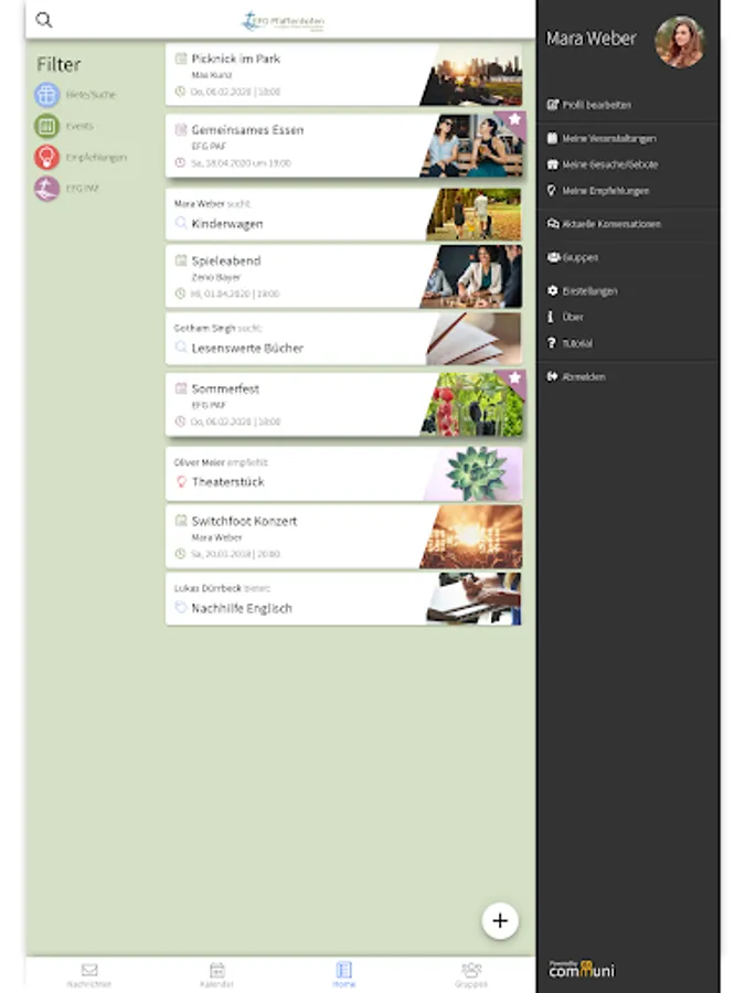 Do you want to network with people in your area, want to receive updates from us, want to give away your old microwave or are you looking for a jack? Nothing easier than that - the app ensures optimal networking. Download, register, log in, enjoy!