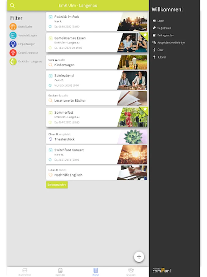 Do you want to network with people in your area, would you like updates from us, do you want to give away your old microwave or are you looking for a jack? Nothing easier than that - the app ensures optimal networking. Download, register, log in, enjoy!