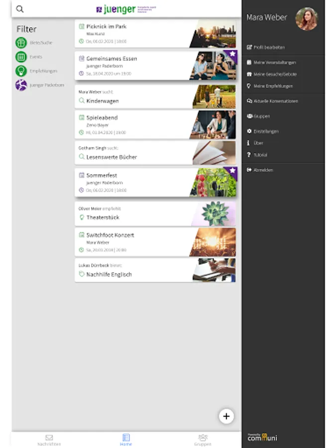 Do you want to network with people in your area, want to receive updates from us, want to give away your old microwave or are you looking for a jack? Nothing easier than that - the app ensures optimal networking. Download, register, log in, enjoy!