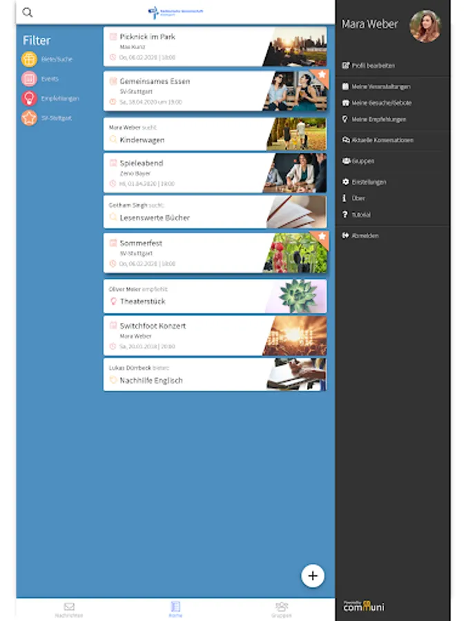 Do you want to network with people in your area, would you like updates from us, do you want to give away your old microwave or are you looking for a jack? Nothing easier than that - the app ensures optimal networking. Download, register, log in, enjoy!