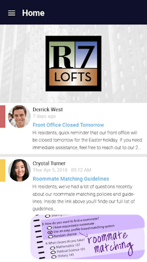Our new App can enhance your experience at R7 Lofts through simple and effective communication.