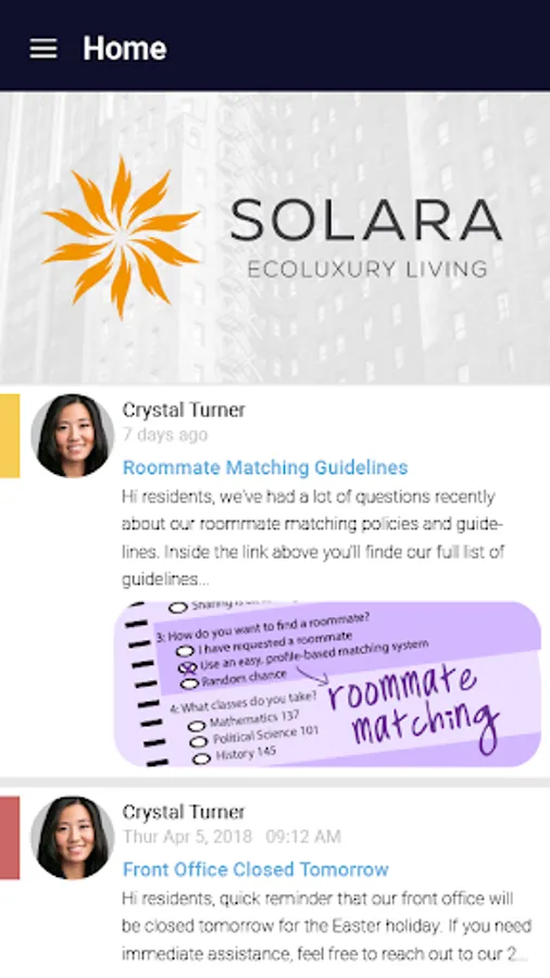 Our new App can enhance your experience at Solara Apartments through simple and effective communication.