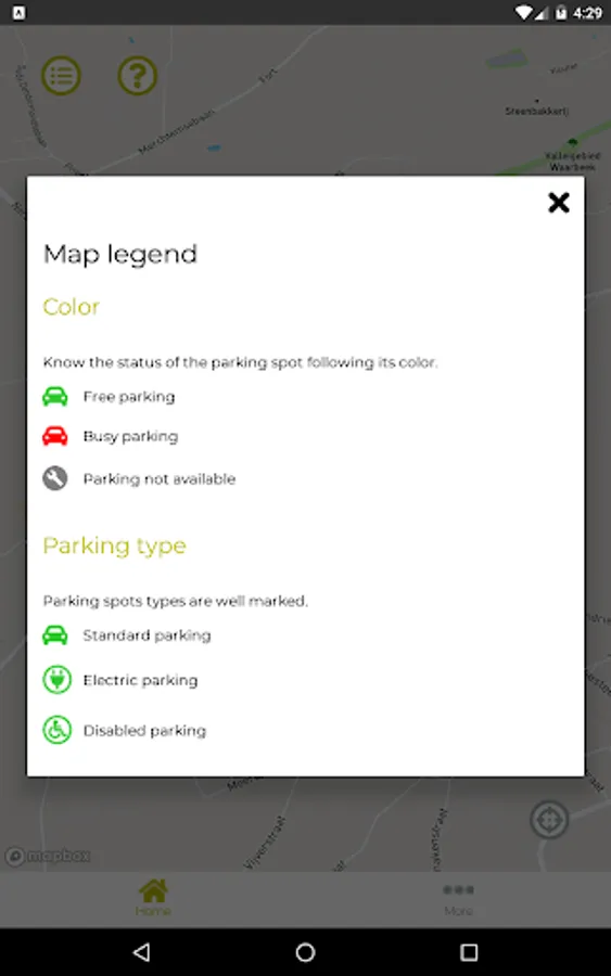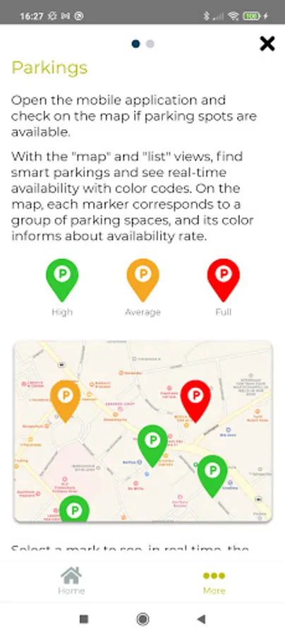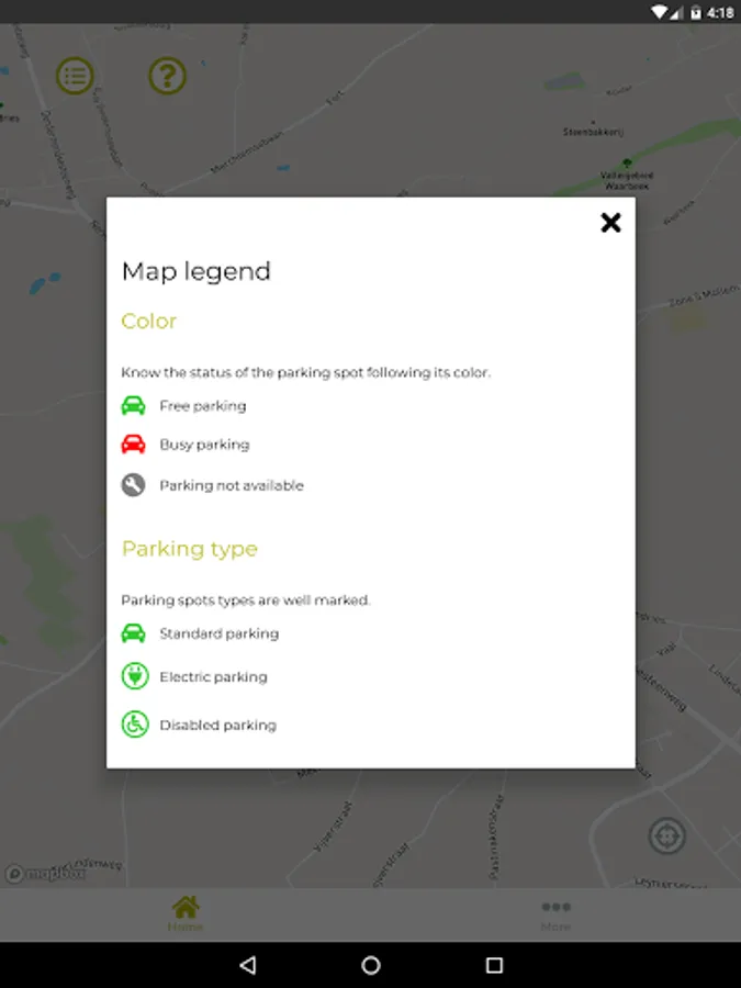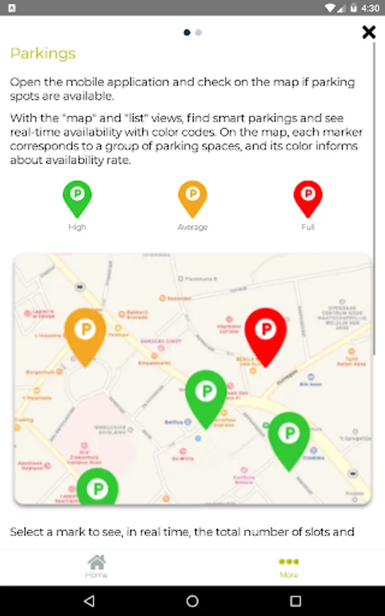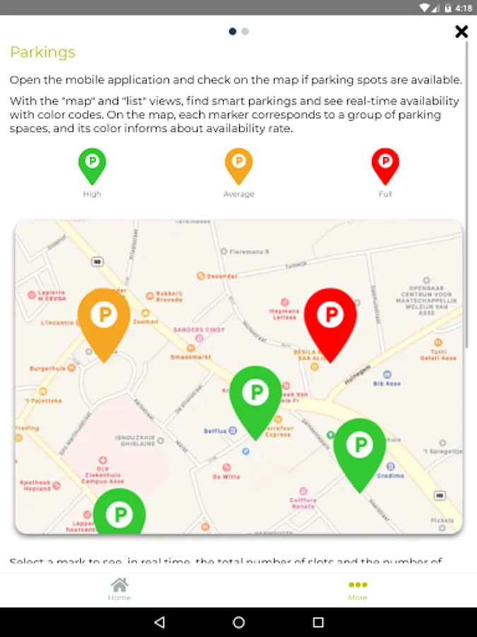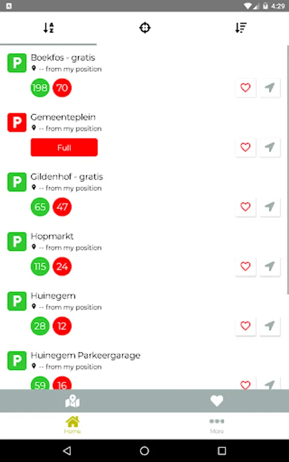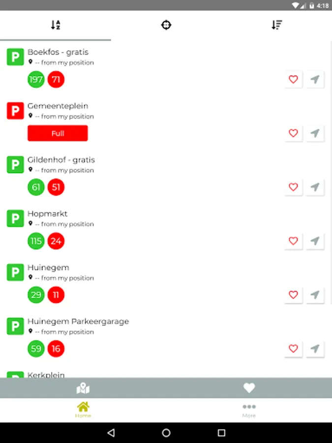 Open de app en kies je parking. Check vervolgens de beschikbare vrije parkeerplaatsen en kies “navigeer”. Druk op “start”.