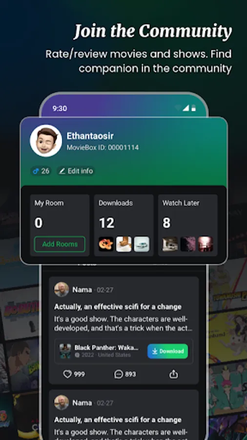 - Rate/review movies and shows and watch trailers in the MovieBox Community! Join and connect with other movie lovers to share recommendations, and engage in discussions about movies you have watched!