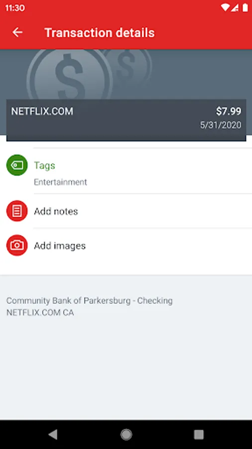 Keep your transactions organized by allowing you to add tags, notes and photos of receipts and checks.