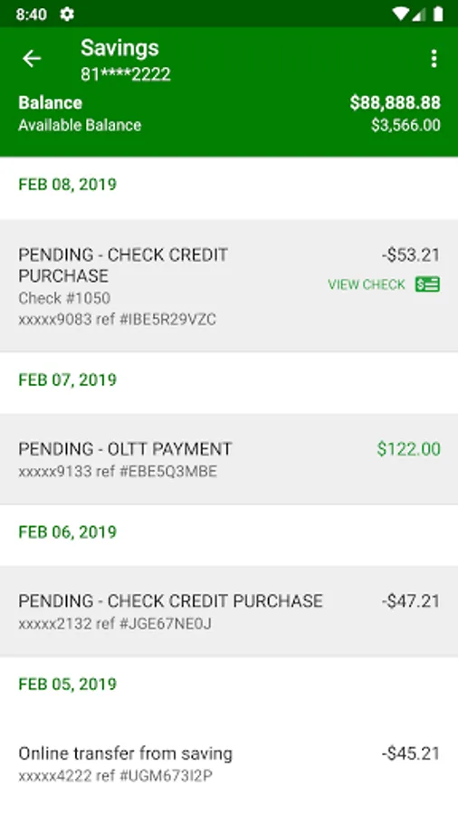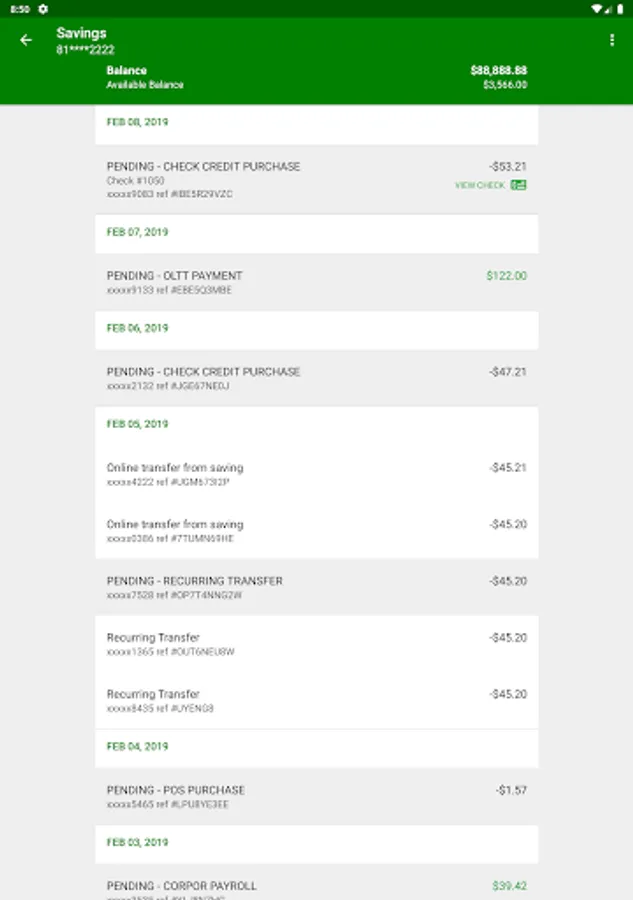 • View scheduled transactions, including pending deposits, upcoming transfers, and bill payments.