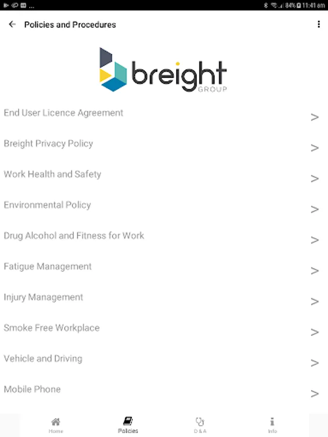 This app is for the community of Breight Group in Western Australia. It allows remote employees easy access to their work and flight schedules, D&A locations, and Policies.
