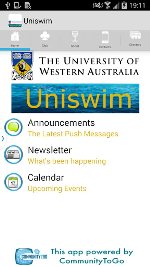 This app is for the community of Uniswim in Western Australia. It allows easy access to often sought information such as the newsletter, calendar and UWA Swim Club information. Uniswim can keep its members up to date via push notifications.