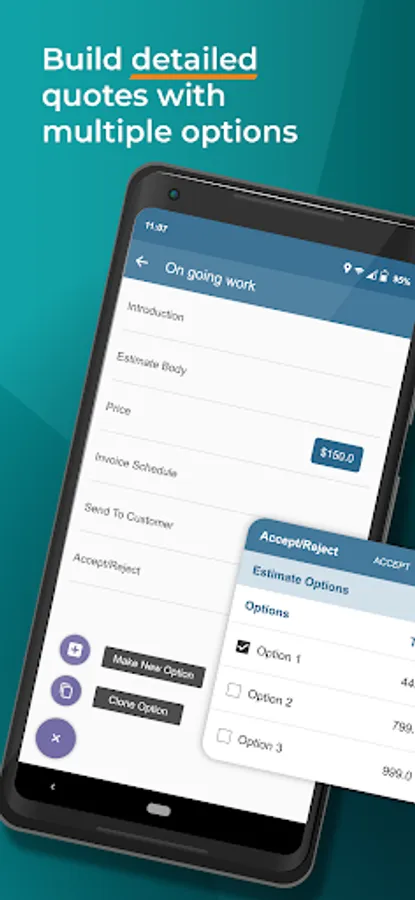 Complete professional, multi-option quotes and have customers sign off work immediately or email it to them to review and accept online.