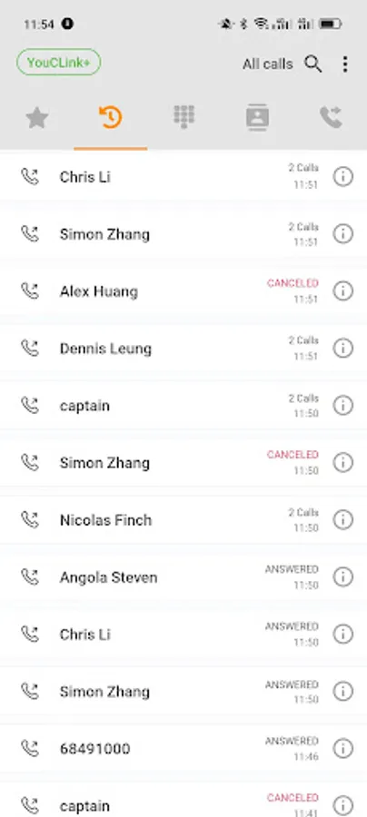 YouCLink Plus is a SIP user agent client for Android devices that enables end-users to make and receive calls over their existing cellular service using their business identity. End-users can dial and manage calls from their personal smartphones just as they would from their office desk phone, including tracking calls, picking up business voicemail, managing personal settings, and more.