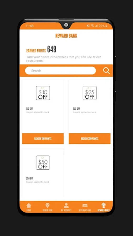 - Redeemable coupons: 150 Points: $10 off | 350 Points: $25 off | 650 Points: $50 off**