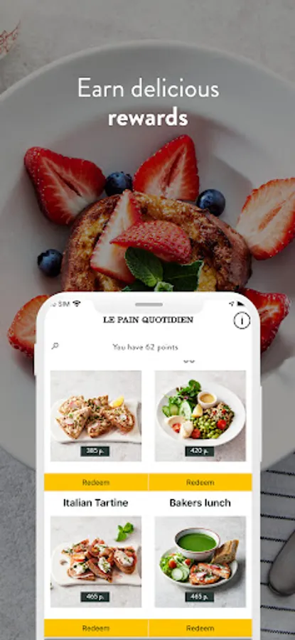 Our app is the easiest way to manage your Tartine Club membership: view your member ID, check your point balance, redeem your points, keep track of your rewards and update your profile.