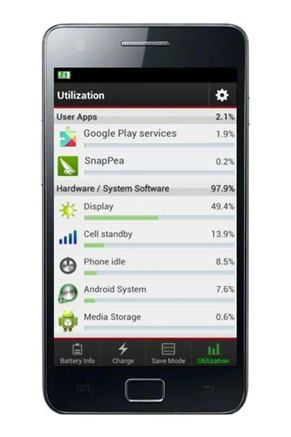 * Utilization Stats- At-a-glance statistics tell you which apps and features are drawing the most power