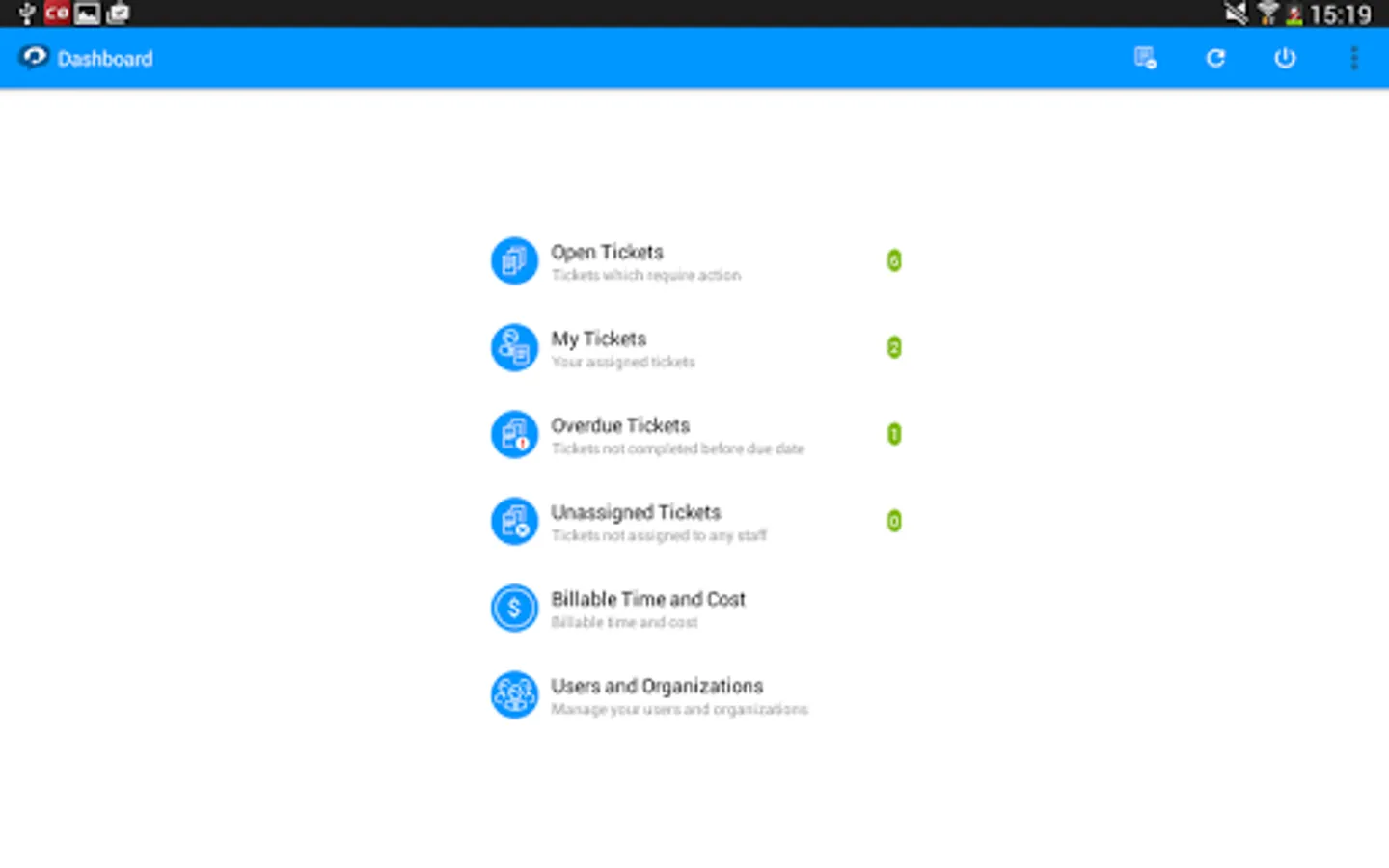 - Total view on open, assigned to you, overdue and unassigned tickets