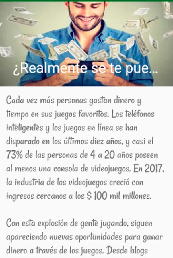 There are many applications to earn money playing online, in our app you will discover what they are and what they are about. This is a guide in which you will learn many ways to be able to do a job that you like. Who would not like to earn money just by playing?