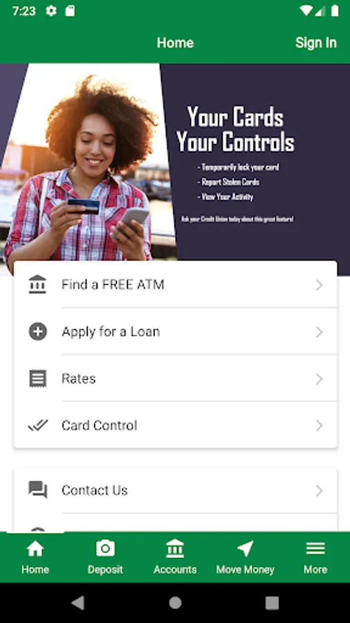 Our mobile app provides members convenient access to Columbia Credit Union's mobile website, mobile check deposit, mobile banking, branch & contact information, and help.