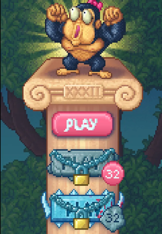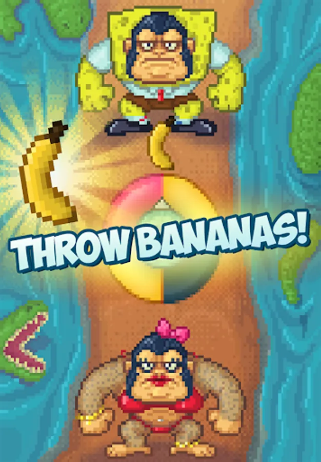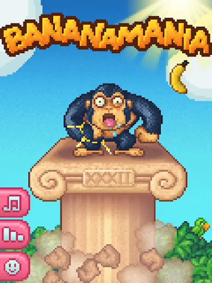 Bananamania is a funny pixel game in which you have to feed the bananas to the gorillas. Throw the bananas at the right moment to hit the girl and boy gorilla. Each gorilla will change costume each time you throw them a banana. They’ve got lots of funny matching costumes, so try to keep them matched up.