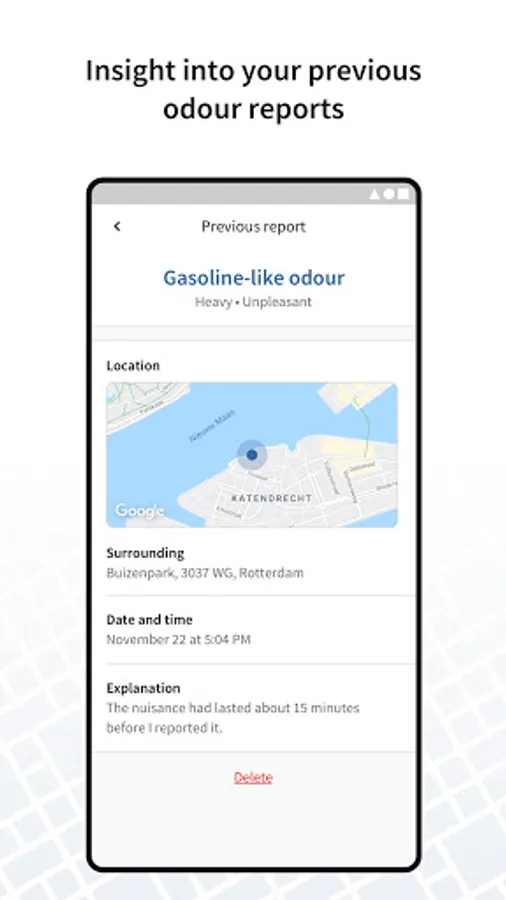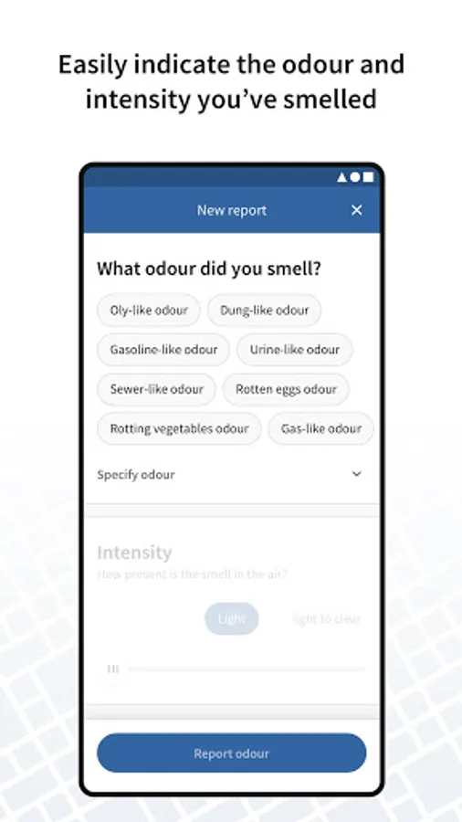 Do you experience odour nuisance? The Odourapp is intended for mapping odours caused by industry, but also for odours released around, for example, agriculture, livestock farming and waste processing activities. You can use your current location and time or manually indicate a location and time where and when you smelled the odour. In the app you indicate which odour you have smelled by choosing from a number of options and determining the intensity. Once you have entered the location, time and odour you can send the notification. We use this information to link odour observations to other data sources for mapping odour nuisance.
