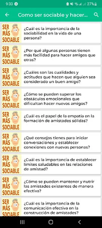 Do you feel uncomfortable in social situations? Do you want to improve your communication skills and build meaningful connections with others? You have come to the right place! Our app offers you a wide variety of resources and tips to help you be more sociable in all areas of your life.