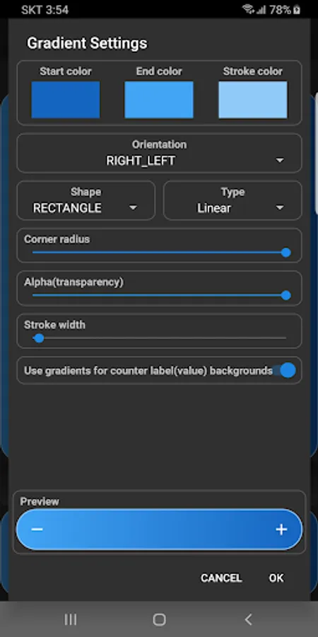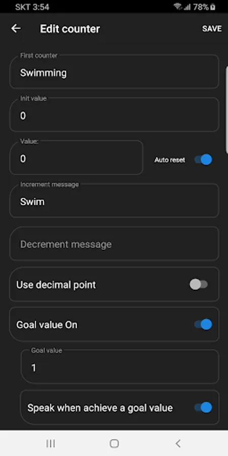 - Title, Increment value, Decrement value, Increment message, Decrement message