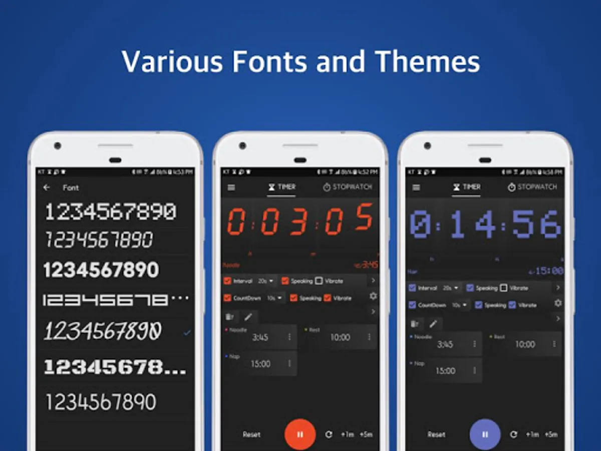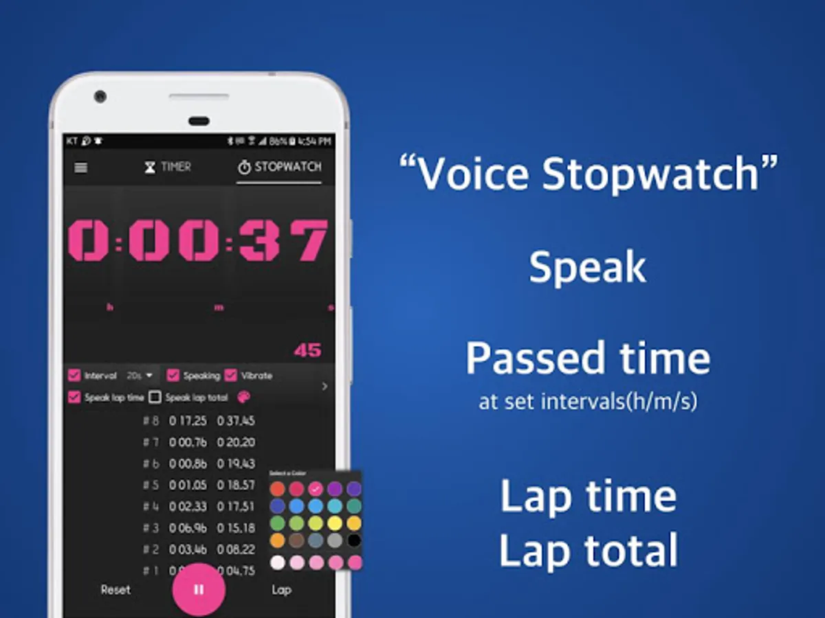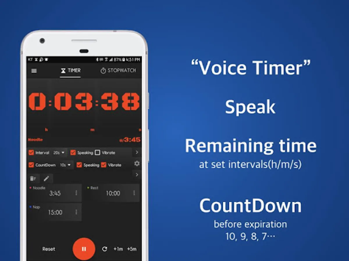 Use it as a kitchen timer, exercise(tabata, pomodoro), study, alarm, and more.