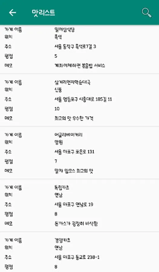 Press the "Lookup" button on the start screen to see the information you have entered so far.