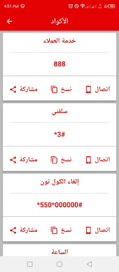 An application that contains the codes of all companies inside Egypt with some other functions, such as searching for the country code, the possibility of charging the card by photographing the number with the camera, knowing the branches of each company, knowing the applications of each company and the ease of downloading them and easy access to the website of each company