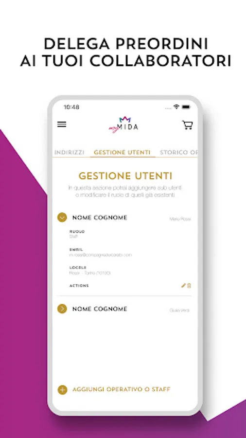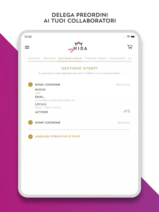 Create up to three accounts in addition to yours to delegate pre-orders on the platform and make all workflows leaner and faster
