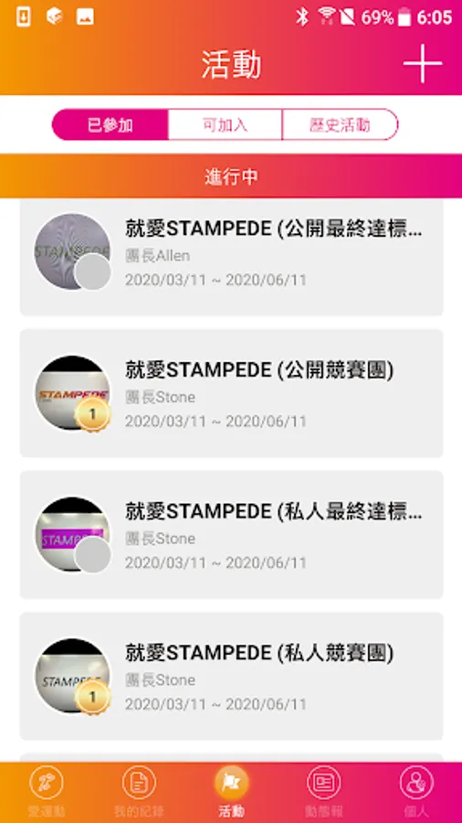 Stampede 也提供「揪團運動」與「成就挑戰」功能,藉由社群的力量激勵運動。