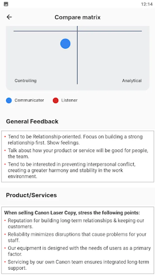 This application is for use by people who have been attended in one or more of the Persona GLOBAL Persuasive Communicator™ Series Workshops. The Persona GLOBAL Gameplan mobile application is an interpersonal communications expert profiling system enabling the user to be more effective in achieving their communication goals. After answering 16 questions using a “slider”, an algorithm calculates a position on a communication style matrix and recommends 5 important key points the user needs to emphasize with the person being profiled in order to establish a trusting relationship while achieving the desired results. Product, Service, or Idea benefits can be programmed into the Gameplan application. Available in multiple languages. Recommended/Designed for those involved in Sales, Negotiations, and Management roles.