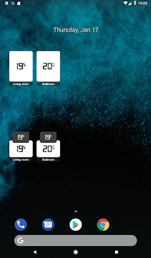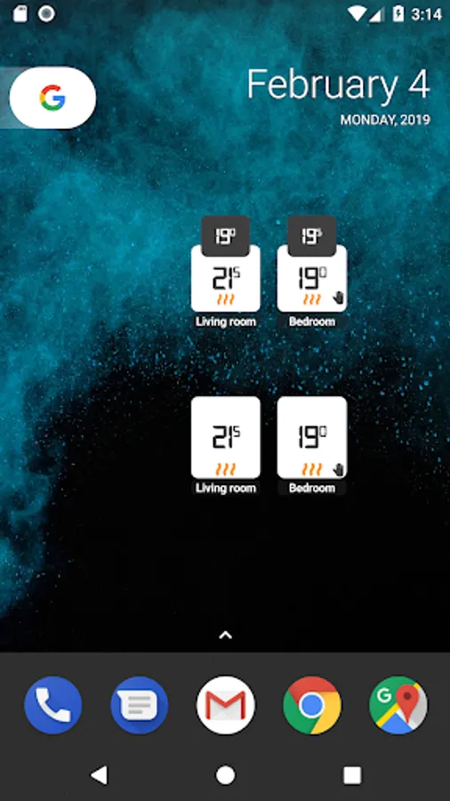 This widget shows you your home's temperature without opening the official Netatmo App. This App requires a Netatmo Smart Thermostat or a Netatmo Smart Valve.