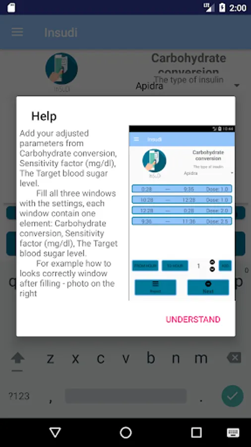 Insudi - (Insuline Sugar Disease) is a calculator for type 1 diabetics, which allows you to calculate the required insulin dose taking into account the necessary parameters. In a simple and quick way, calculate your needs and keep a diary, which will facilitate consultation with a doctor or control of the illness of your loved ones.